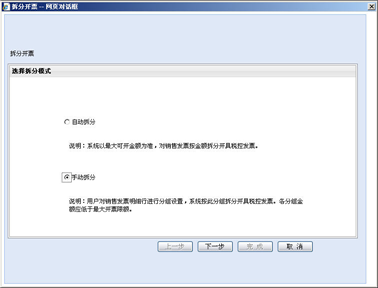 手动拆分:对销售发票按操作员选择拆分成多张税控发票进行开具。