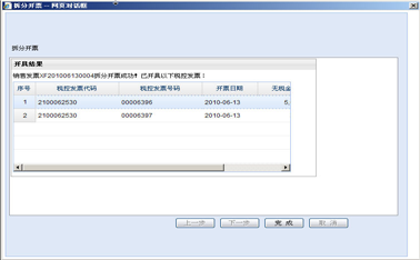【第七步】点击〖完成〗按钮,即完成拆分开票。