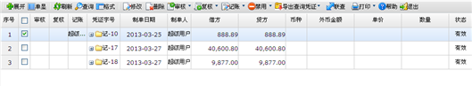 【第二步】查询条件输入确定后,将按照查询条件显示凭证列表,如下图所示。