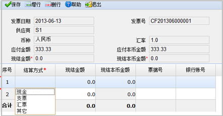企业发生现购业务时,可在采购发票上通过〖现结〗功能来处理,〖现结〗操作支持多结算方式收款,并自动生成“现结”类型的付款单。其付款的凭证分录在采购发票上同步生成,不用再去付款单上生成。如下图。