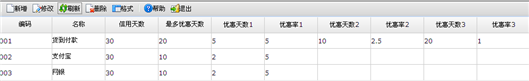 【第二步】通过“新增、修改、删除”按钮可以对付款条件进行维护。在付款条件页面,双击某一付款条件,则进入付款条件编辑页面,如下图所示。