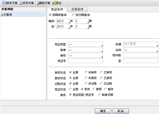 查询条件分为凭证条件和分录条件。
