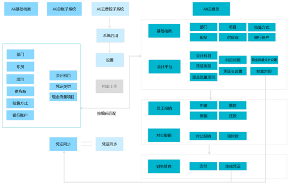(4)A8云费控做档案对照,如果和A6基础档案和总账基础档案完全一致,也不需要做档案对照;