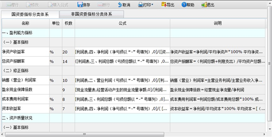 2.国资委指标分类体系表只能对“公式”栏进行编辑,其它各栏不可修改;非国资委指标分类体系表各个栏目均可进行修改。