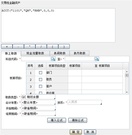 选择一个需要编辑的指标项目点击〖确定〗按钮,打开取数公式维护界面,如下图所示: