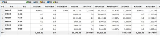 针对预置的部门预算方式,进行科目、部门预算执行情况查询,围绕比较预算、比较实际、期间预算、期间实际、累计预算、累计实际、全年预算、全年实际等维度进行预算分析。