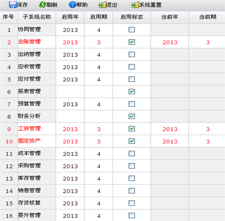 系统启用”菜单项,进入系统启用管理页面,如下图所示。
