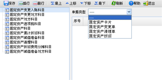 选中一个记账科目分类,单据类型下拉列表显示所选子系统对应单据类型,默认为全部。选取一种单据类型,或为全部,点击〖增行〗按钮,右侧对应新增一行入账科目信息,点击入账科目通过参照按钮选择科目信息。可对某一记账科目分类下的全部单据类型设置同一个入账科目,也可以分别设置不同入账科目。如果指定记账科目分类+单据类型已进行影响因素的设置,则进行科目对照设置时,可指定单据类型在不同影响因素下对应的明细科目,点击〖保存〗按钮,保存记账科目分类对应的明细入账科目信息。