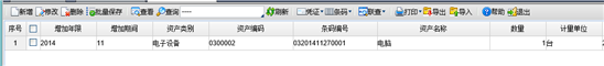 - 系统默认列表显示的属性:序号、增加年度、增加期间、资产类别、资产编码、条码编号、资产名称、数量、计量单位、记账日期、增加方式、使用状态、管理部门、存放地点、原值、累计折旧、预计净残值、单据状态。