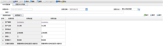 - 如果卡片变更已经生成凭证处理,则不能修改,不能删除。
