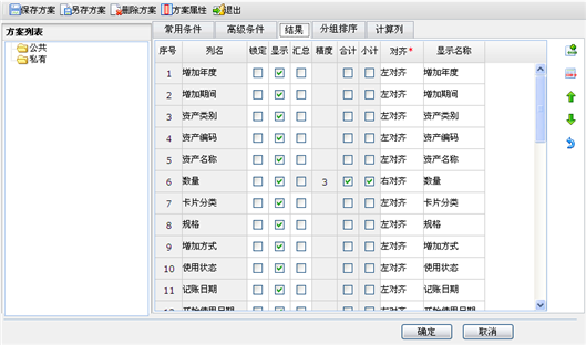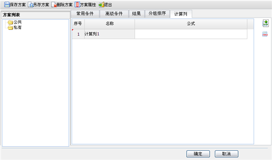 举例说明:计算列查询条件中名称列如“计算列1”会显示在查询条件“结果”中,在“结果”用户可以通过“显示名称”列修改所需显示的名称
