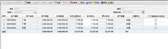 - 反审核:是“审核”的逆向操作,把本期的折旧记录恢复为未审核状态。
