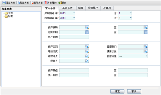 - 管理部门、增加方式、使用状况、存放地点、折旧方法、保管人:参照基础数据信息选择对应的信息