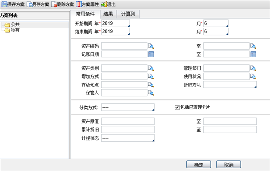 - 管理部门、增加方式、使用状况、存放地点、折旧方法、保管人:参照基础数据信息选择对应的信息