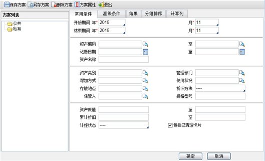 - 管理部门、增加方式、使用状况、存放地点、折旧方法、保管人:参照基础数据信息选择对应的信息