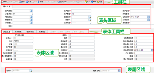 - 辅助信息、附属设备:可以根据固定资产的属性信息选择性录入