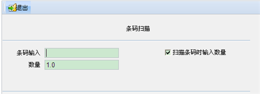 - 在“条码扫描”窗口中手工录入条码或扫描录入条码。