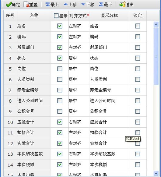 3.使用鼠标单击【上移】、【下移】、【最上】、【最下】按钮,调整此项目在单据中显示的位置。