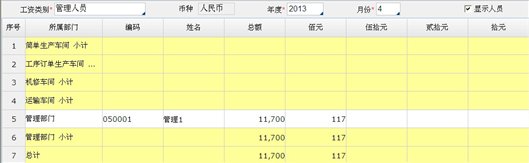 - 工资类别:通过工资类别下拉框选择不同的工资类别。
