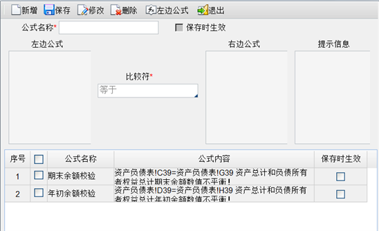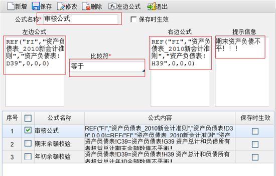 【系统默认预置】系统默认预置了2010新会计准则、小企业会计准则、企业制度的资产负债表的审核公式。