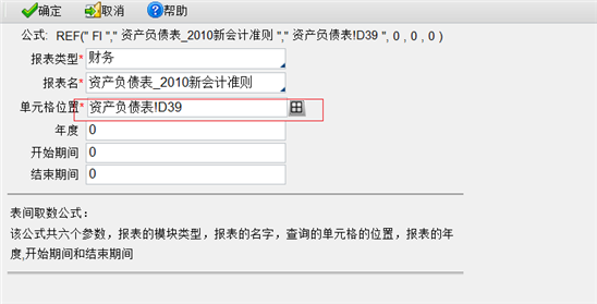 - 公式左侧: 鼠标单击手工直接输入坐标公式、REF公式; 鼠标双击双击,系统弹出“REF函数”导航窗口,录入相关参数,点击确定后,“REF("资产负债表_2010新会计准则","D39")”出现在“公式左侧”框内,可以录入多个函数,可输入大写状态的加减乘除运算符和数字;