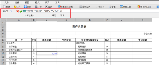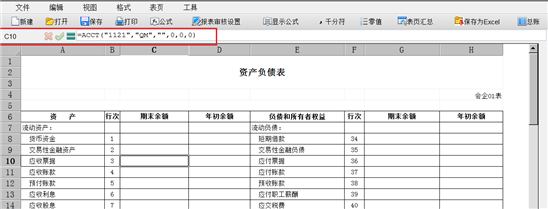 - 选中单元格,若单元格中录入了公式,则选中单元格,不论报表是按照公式显示,还是按照数据显示,工具栏均会显示选中单元格的公式,如下图所示: