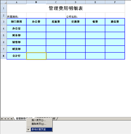 选中表页页签,单击右键,选择【插入表页】,系统自动增加新的表页,详细情况参见3.1.5表页菜单中的描述。