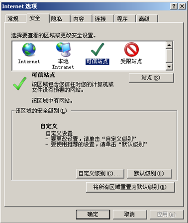 - 在“安全”选项卡中点击“自定义级别”,将Active加载的一些设置为启用。