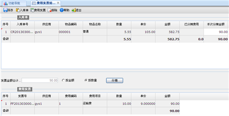 - 可以将一张或多张运费发票分摊到多个仓库多张入库单的多个存货上;一张入库单可以多次分摊费用。