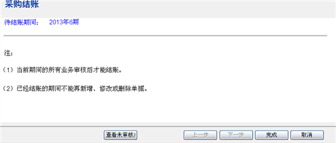 - 已经结账的期间,不能再增加、修改、删除单据。