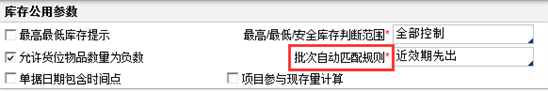 使用批次自动匹配功能时,首先要在《库存管理》的参数设置中设置好“批次自动匹配规则”,参数值不能为“空”。