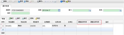 序列号调整单:用于处理启用了序列号控制,但在盘点或其他业务操作时发现实际序列号与账面序列号不匹配,需对序列号进行调整,以做到序列号账实相符。这里的调整只是一个序列号调整为其他序列号,不包括序列号的调加与调减,序列号调加与调减由于涉及数量调整,因此通过盘点单或货位盘点单进行。