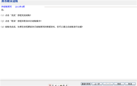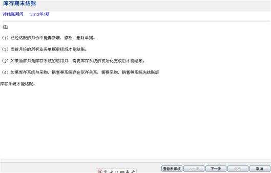 - 如果库存系统与采购、销售系统存在依存关系,需要采购、销售等系统先结账后库存系统才能结账。
