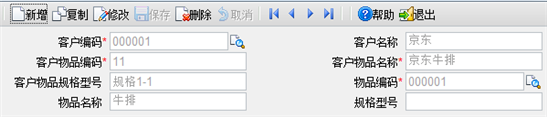 【第二步】按物品或按客户新增客户物品对照表,点击〖新增〗按钮,进入客户物品对照表新增界面。如下图所示: