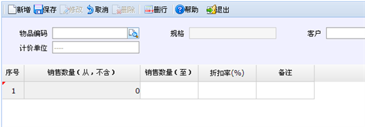 - 销售数量(至):手工录入,要求大于0,且大于本记录的‘销售数量(从)’;