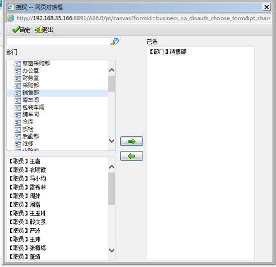 【第四步】在左边的部门与人员列表中,选中需授权的部门或人员,点击〖