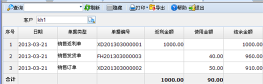 - 结余金额:销售返利及使用余额明细查询表中,结余金额即是根据返利对象的不同,计算在该返利对象中,如返利对象为“客户”,则表体结余金额是该客户的查询期间内,上期结余金额加上本期返利金据再减去本期使用金额的数据。