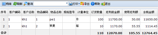 通过客户、部门等查询条件,查询一段时间内客户、物品的订货、发货情况及使用返利额的情况。