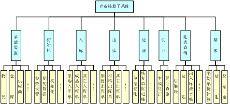 存货核算的主要功能有:基础数据、初始化、日常业务、期末处理、账表查询。