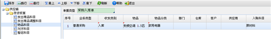 【第二步】以采购业务为例,设置对照科目时应设置物品科目、对方科目、暂估科目。在左侧栏目选中物品科目,在右侧单据类型中选择采购入库单。