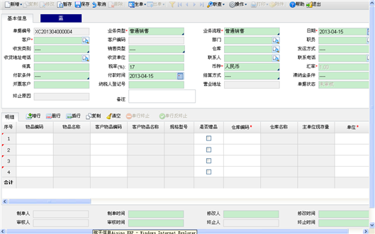 客户 | 客户录入后,会将客户档案上的分管部门、负责业务员、付款条件、收货地址电话、收货单位、收货人、收货电话、传真、开票客户、纳税人登记号等分别带入到单据表头对应的数据项,可修改。 已禁用的客户不可参照录入,不可用于新增单据。 | |