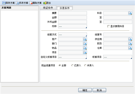 分录条件 指按凭证摘要、科目、金额、币种等分录信息进行查询。