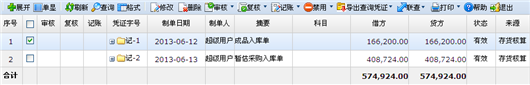 在凭证查询功能下,可以对凭证进行审核、复核、记账、冲销、导入等操作,但这些操作必须由具有此权限的操作员进行。具体操作方法参见《总账管理》用户手册 4.1.2凭证查询。