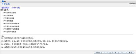 - 如果未结账月为存货核算的启动月,系统不提供反结账。