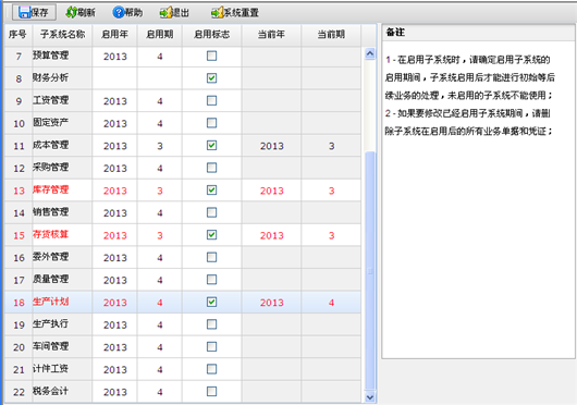 主要功能:启用生产计划子系统,确定启用年度及月份。