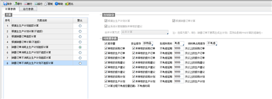 MRP计算参数设置是用来设置与MRP计算相关的一些参数值,用户可以将不同的参数设置方法保存为不同的方案,应用于不同的场景。