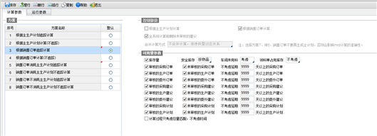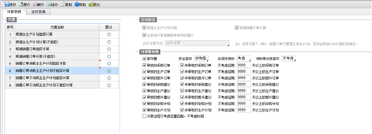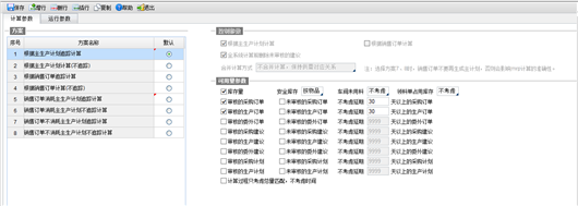 1.内置了系统预置方案,可以达到免设置的效果,可以将不同的计算参数保存为多种方案,但必须有且只能有一套计算方案是默认方案,在MRP计算时采用默认设置方案。