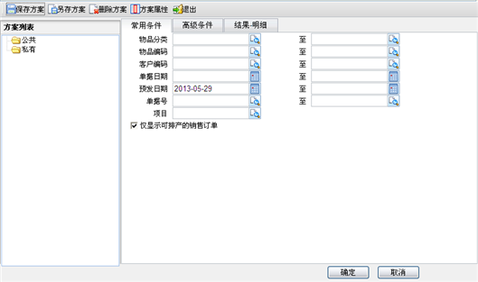 仅显示可排产的销售订单 | 选中时,仅显示可排产数量大于0的销售订单行,不选中时不受此限制,但必须输入预发日期。 |