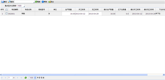 本次排产数量 | 本次要生成主生产计划的数量,可以手工修改。 |