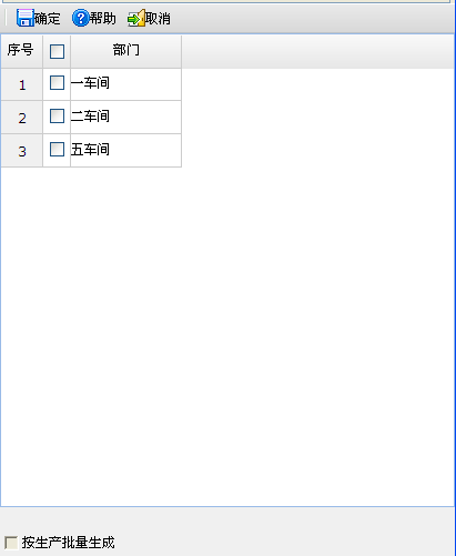 【第二步】选择部门后,点击“确定”按钮,进入生产计划派工页面,如下图所示。